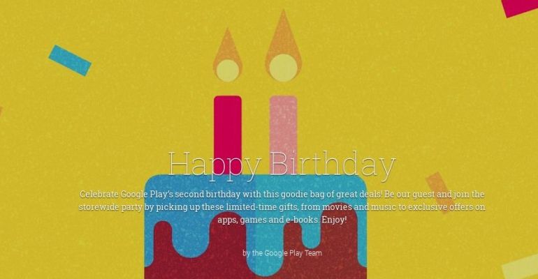 A Google Play Store faz hoje dois anos e a Google está a comemorar este dia especial com uma gigante campanha de promoções em todas as suas categorias.