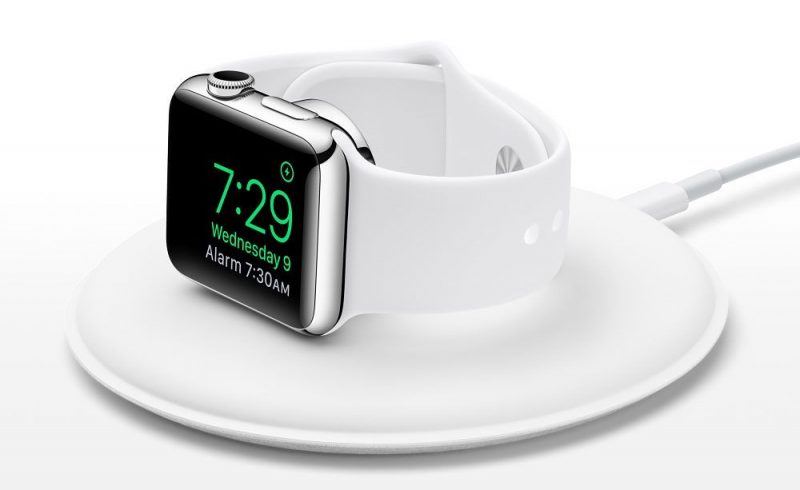 A nova Magnetic Charging Dock permite carregar o Apple Watch através de magnetismo, ou seja dispensa quaisquer ligações. Para alimentar a bateria basta colocar o relógio na doca, quer deitado com o visor para cima e com a pulseira aberta, ou de lado. Quando colocado na posição “de lado” o Apple Watch entra automaticamente em modo Nightstand e transforma-se numa espécie de alarme/despertador, com botões que possibilitam parar ou adiar o alarme.