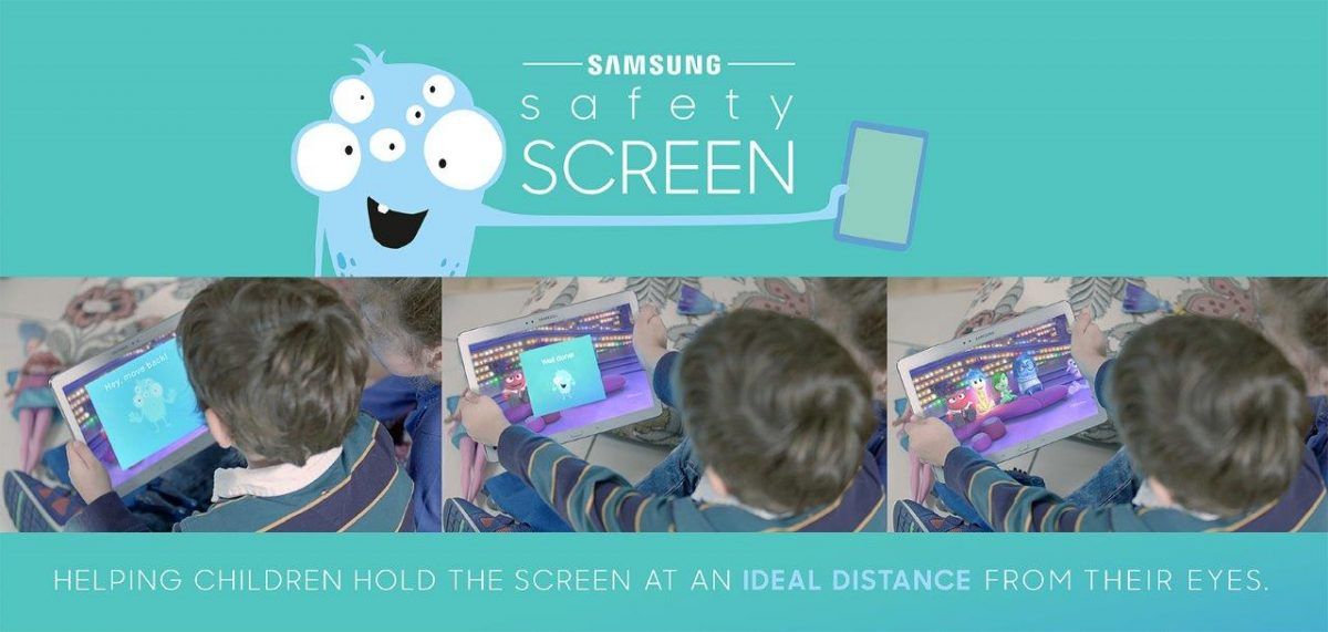 A Samsung lançou uma aplicação, a Samsung Safety Screen (Visor Seguro), que ajuda os utilizadores, especialmente as crianças, a manterem os seus equipamentos móveis a uma distância de visualização ideal para os seus olhos.