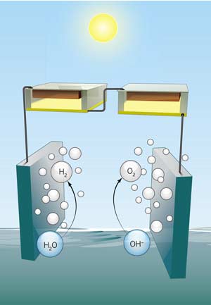 O novo trabalho consistiu no uso da luz solar para a eletrólise, indução de uma corrente elétrica que, no caso estudado, provoca a divisão da água em hidrogênio e oxigênio. No entanto, a equipe não empregou células fotovoltaicas de silício, que hoje formam a base do fornecimento comercial e residencial de energia solar transformada em eletricidade, pois a diferença de potencial, ou voltagem, gerada entre duas células de silício convencionais se limita a 0,75 volts, de maneira que seriam necessárias quatro dessas células conectadas para que o sistema obtenha energia suficiente para a quebra da molécula de água.
