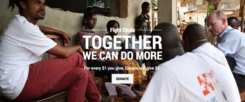 Como complemento desta ação, o Google criou também uma página exclusiva para hospedar a campanha Fight Ebola, que faz a seguinte proposta: “Para cada dólar que vocês doarem, o Google doará dois dólares”, até um limite total de 7,5 milhões de dólares.