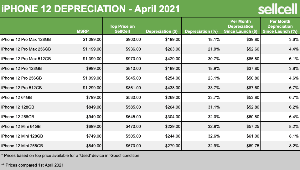 Não deixa de ser inesperado que o iPhone 12 Mini não lidere esta lista, já que os seus números de vendas estão bem abaixo do previsto. O elemento da família iPhone 12 que melhor consegue manter o seu preço é o iPhone 12 Pro Max 128 GB, que perdeu apenas 18.1% do seu valor total.