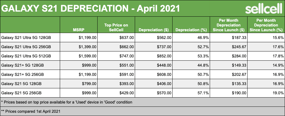 Uma análise à desvalorização destes equipamentos revela que os iPhone 12 perderam entre 18.1 e 33.7% do seu valor desde que foram lançados no derradeiro trimestre de 2020. A família S21 da Samsung, por outro lado, já desvalorizou entre 44.8 e 57.1% desde o lançamento, que teve lugar em janeiro deste ano. Não deixa também de ser surpreendente que o Galaxy S21, o mais barato da gama, é o que mais desvalorizou com a variante 256 GB a perder 57.1% do seu valor em apenas 3 meses.
