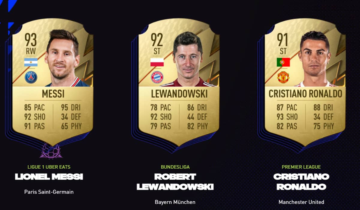 A versão deste ano da mais popular franquia de futebol de sempre terá Messi como o melhor jogador (pelo menos em classificação), com uma classificação de 93. A medalha de prata no FIFA 22 vai para o avançado polaco do Bayern Munique, Robert Lewandowski, com uma classificação de 92.