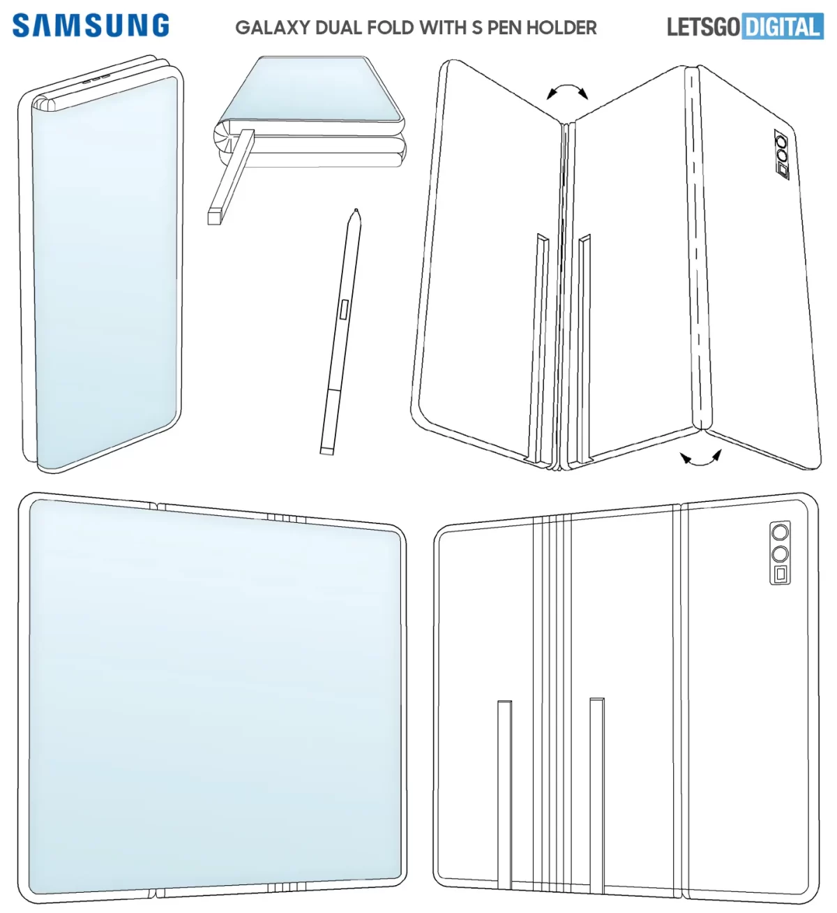 Esta nova patente foca-se não só num sistema de 2 dobras, mas também na integração da muito popular S Pen. Com a presença de um ecrã de grandes dimensões, a adição de suporte para a S Pen parece ser a escolha perfeita para maximizar o nível de produtividade.