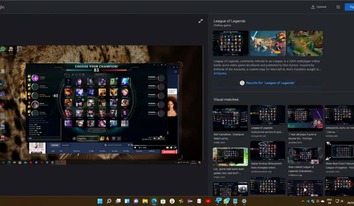 Semelhante à forma como funciona nos smartphones, uma vez terminada a análise da imagem, os resultados são apresentados à direita, onde no topo vemos a identificação do tema de maior destaque na imagem. Por baixo, poderás explorar uma vasta lista de imagens que correspondem à fotografia analisada.