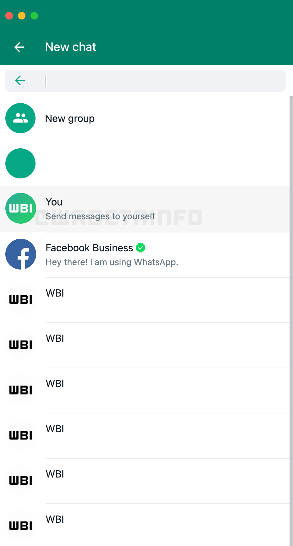 Tal como se pode ver na imagem, quando ficar disponível vais poder iniciar um novo chat contigo próprio de forma muito simples. Ao aceder à lista de contactos estará disponível a opção “You”.