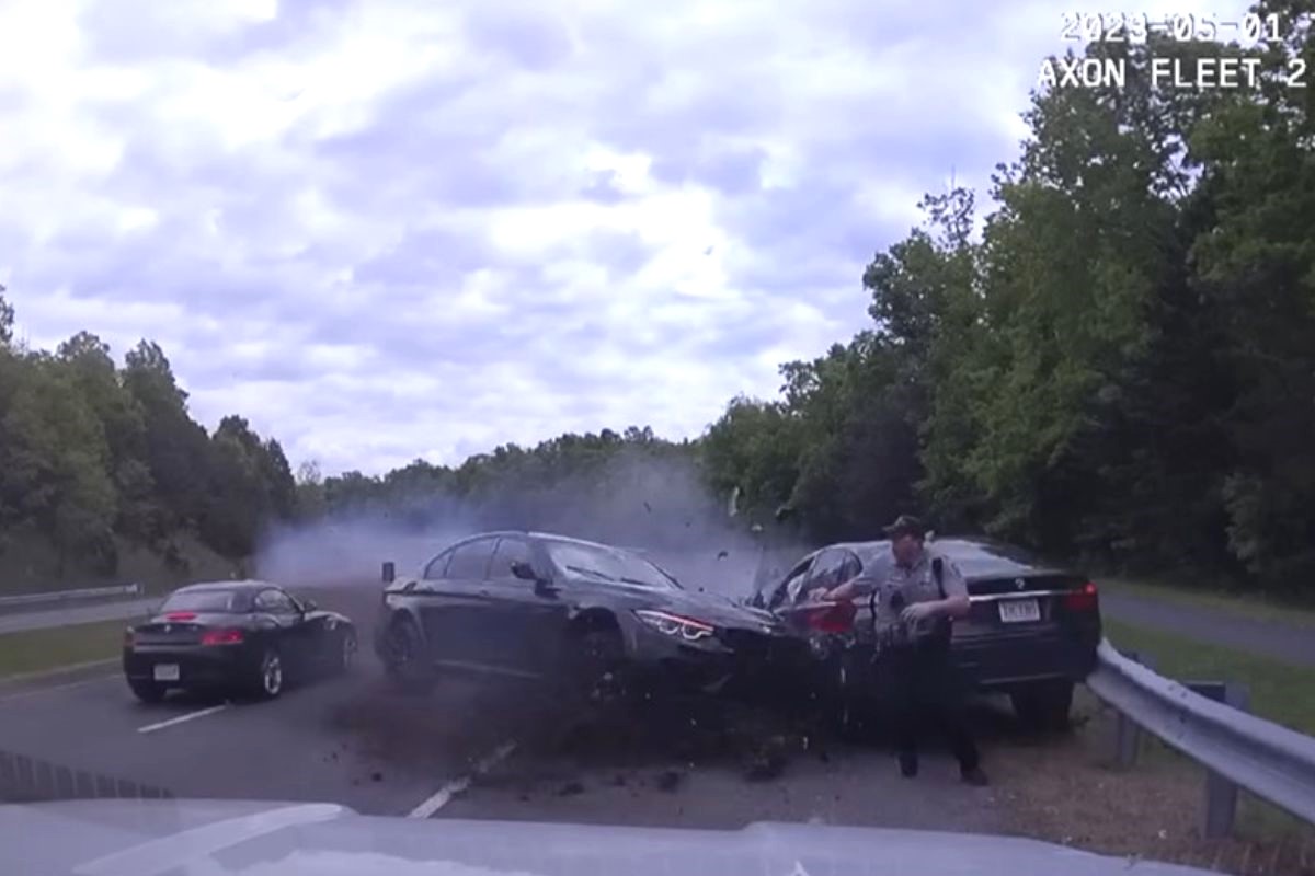 A polícia de Fairfax, que divulgou o vídeo, afirmou em conferência de imprensa, que o BMW que se despistou era conduzido por um jovem de 17 anos e que seguia a mais de 200 km/hora.