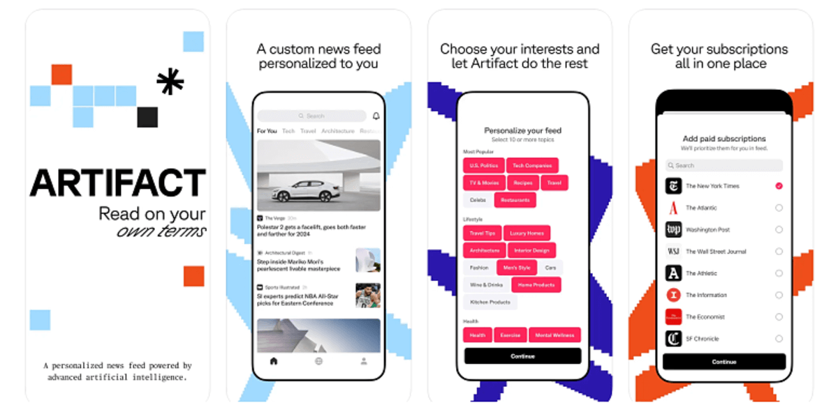 Segundo informações do próprio site do Artifact sua proposta é “encontrar as reportagens gratuitas mais informativas para você, removendo textos caça-cliques e usando inteligência artificial para criar resumos rápidos”.
