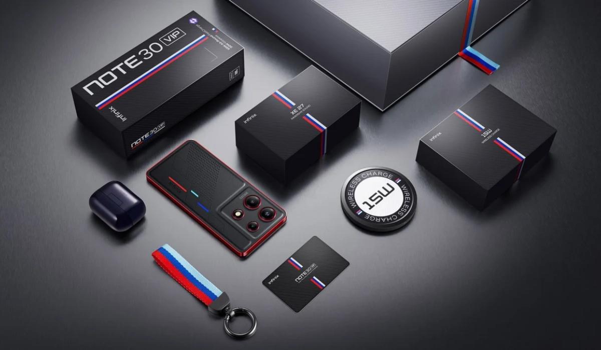 O pacote do Infinix Note 30 VIP Racing Edition inclui vários extras temáticos da BMW, como uma caixa de retalho personalizada, um carregador sem fios de 15W, um TWS, um porta-chaves e um cartão VIP. Este último oferece um suporte pós-venda melhorado, tornando a experiência ainda mais exclusiva para o utilizador.