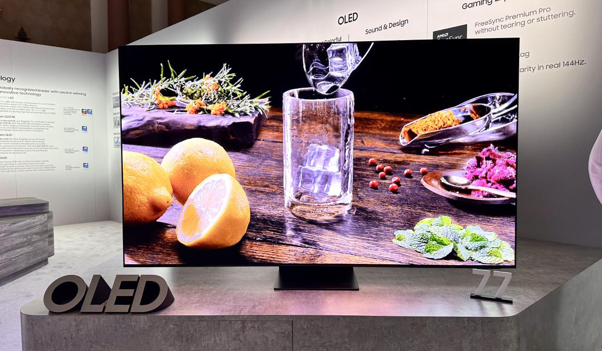 Os novos modelos vêm em duas variantes: S89C e S91C. O S89C tem um suporte de mesa com largura ajustável, enquanto o S91C vem com um suporte de mesa convencional, semelhante ao que já vimos em outras TVs de alta gama da Samsung. Estes modelos foram apresentados no stand da Samsung na IFA 2023, em Berlim.