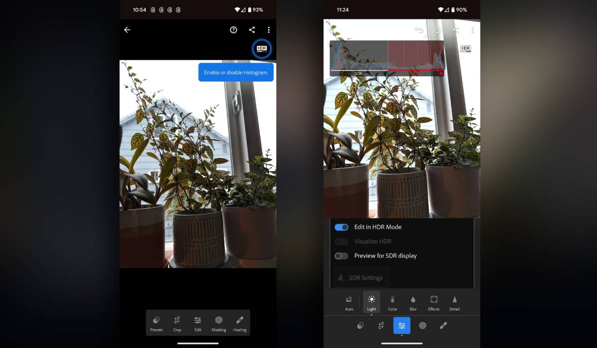 Para começar a usar esta funcionalidade, precisas de ter a versão 9.0.0 do Lightroom instalada no teu smartphone Pixel. Uma vez na aplicação, tens duas opções para obter fotografias HDR: