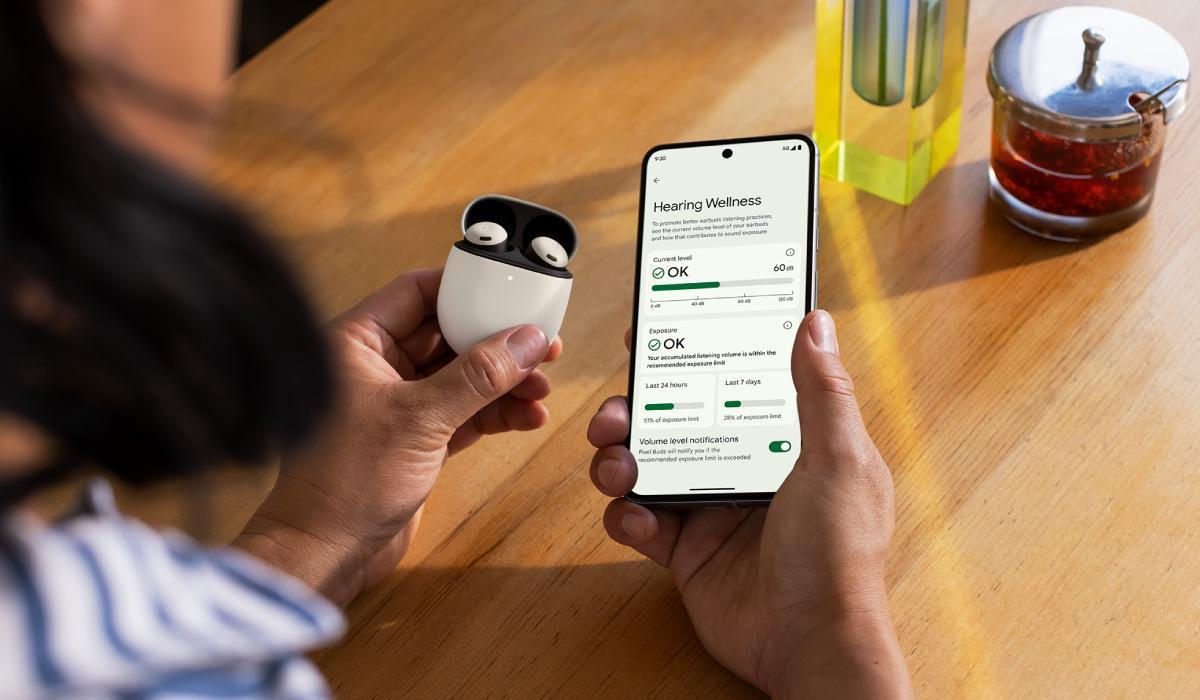 Os Pixel Buds Pro agora permitem que os utilizadores compreendam e avaliem os seus hábitos auditivos, oferecendo sugestões para manter a saúde auditiva. A aplicação dos Pixel Buds Pro proporciona um registo detalhado dos hábitos de audição e alertas para reduzir o volume quando necessário.