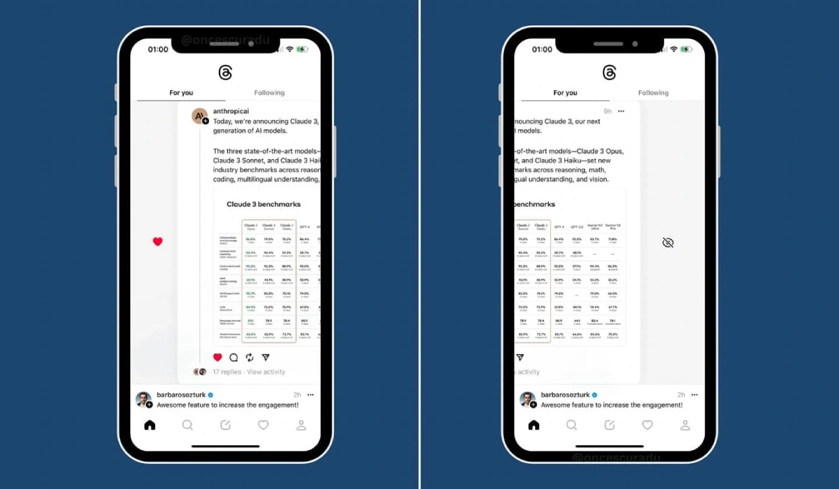 Esta nova funcionalidade permite aos utilizadores gostar ou ocultar facilmente posts com um simples gesto de deslizar para a esquerda ou para a direita. Deslizar para a direita gosta do post, enquanto deslizar para a esquerda o esconde do feed. Isto torna o Threads uma experiência mais fluída, semelhante a outras aplicações sociais como o Twitter e o Mastodon que utilizam controlos por gestos.