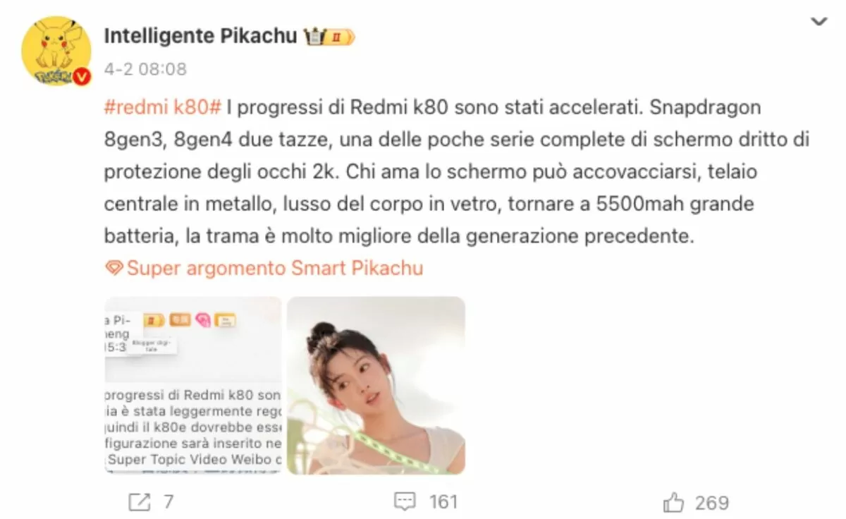 De acordo com um leaker na rede social chinesa Weibo, a Xiaomi prepara-se para lançar dois smartphones da gama Redmi K80. A submarca Redmi nasceu em 2013 como uma aposta da Xiaomi na disponibilização de smartphones com alta tecnologia a preços bastante competitivos. Esta nova aposta nos K80 poderá trazer algumas alterações face à geração anterior.