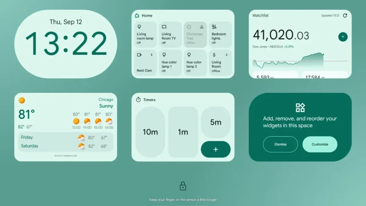 Atualmente, o “glanceable hub” mostra um máximo de 6 widgets de cada vez, dispostos numa grelha 2×3. Com a nova funcionalidade, alguns widgets poderão ocupar mais espaço, mostrando mais informações de relance.