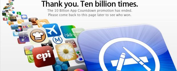 A Apple atingiu os 10 bilhões de downloads das aplicativos para os seus produtos. A empresa tinha um countdown instalado na sua página, que alcançou o número 10 000 000 000. A pessoa que fez o download do número redondo vai poder fazer compras na App Store no valor de 10.000 dólares.