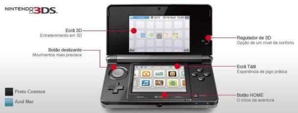 A nova consola da Nintendo  tem três câmeras, sendo duas exteriores que permitem fotografar em 3D e uma interior, apontada para o usuário. Ao contrário das anteriores, tem também dois ecrãs/telas: o inferior é tátil e faz uso de um stylus telescópico, que se guarda na própria unidade. O ecrã/tela superior apresenta imagens em 3D que podem ser vistas sem óculos especiais, sendo que existe um regulador de 3D que permite ajustar a profundidade do efeito ou mesmo desativá-lo completamente. No final do post, pode ver um vídeo com as novas funções da Nintendo 3DS