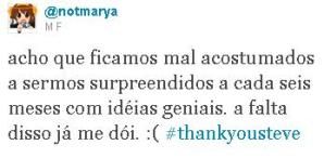 Mas é nas redes sociais que se vê a marca que Steve deixou na nossa vida. #thankyousteve é a palavra chave mais utilizada no Twitter e o Google Plus foi inundado de posts em honra do fundador da Apple.