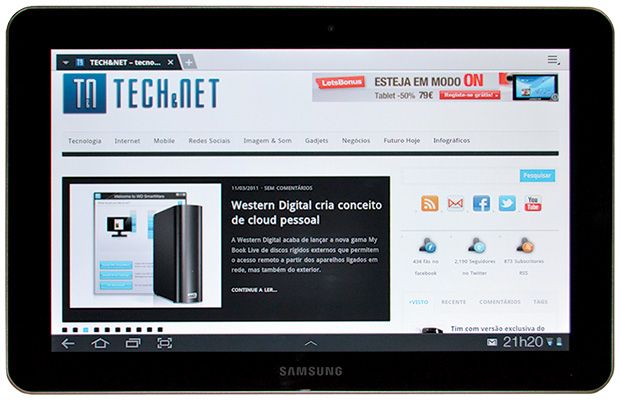 Tela/ecrã – Já o dissemos: este Galaxy Tab 10.1 tem o tamanho certo para uma boa visualização de conteúdos. Acresce a excelente qualidade de imagem e a nitidez, que permitem uma boa experiência em qualquer tipo de ambiente. Outra coisa não era de esperar da empresa que trouxe para o mercado o smartphone Galaxy SII.