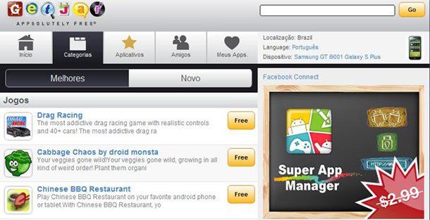 O GetJar é semelhante ao AppShopper mas com uma diferença, todos os jogos e aplicativos são gratuitos. Para baixar os jogos basta acessar o GetJar através de seu smartphone em m.getjar.com. Ao entrar no endereço, o GetJar reconhece automaticamente o sistema e modelo do seu smartphone e lista os jogos e apps compatíveis. Estão disponíveis gratuitamente títulos como Angry Birds e Fruit Ninja além de aplicativos com diversas finalidades como editar textos, bater papo, navegar na internet, compartilhar imagens etc.