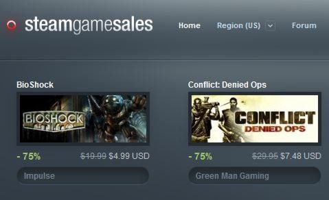 Para aqueles que compram jogos em serviços de distribuição digital, o Steamgamesales é a pedida certa. Ele reúne em uma só página as últimas promoções em jogos das plataformas Steam, Direct2Drive, GamersGate, Green Man Gaming, GOG, Impulse, Desura, Beamdog e Get Games. Os descontos podem chegar a 75%, o que sem dúvidas é uma grande economia. Se você não quiser perder nenhuma promoção, recomendo vivamente que visite o Steamgamesales e assine o RSS feed para ficar a par das últimas promoções.