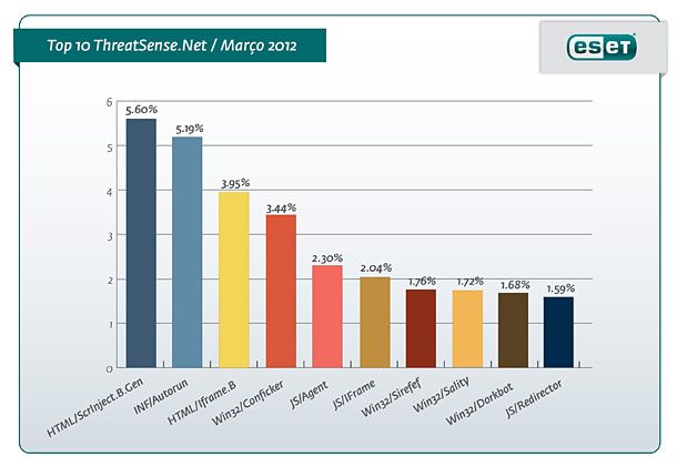 A ESET, líder mundial em proteção proactiva contra malware, representada em Portugal pela WhiteHat, divulgou a lista das principais ameaças informáticas mais activas durante o mês de Março. Destaque para a entrada de quatro novos troianos na tabela, com especial enfoque no JS/Agent, uma ameaça que mostra uma caixa de dialogo que solicita ao utilizador que adquira um determinado produto ou serviço. Após a vitima efectuar o pagamento, o malware é removido do computador.