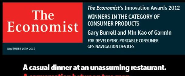 A Garmin, líder mundial em soluções de navegação por satélite*, anunciou que os seus cofundadores, Dr. Gary Burrell e o Dr. Min Kao, foram selecionados para receber o The Economist Group 2012 Innovation Award (Prémio de Inovação 2012) atribuído na categoria de Consumer Products (Produtos de Consumo) pelos dispositivos portáteis de navegação da Garmin.