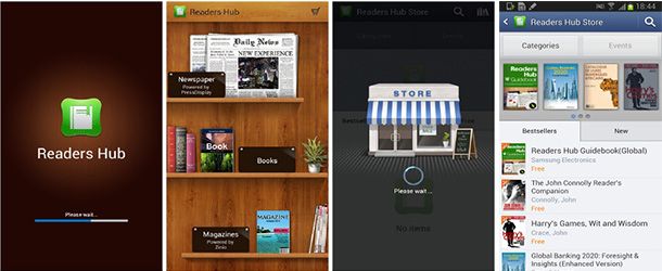O Readers Hub 2.0 é compatível com os formatos ePub, PDF, HTML 5 e ePub 3. Além disso, a Samsung desenvolveu, para as editoras, um portal que lhes permite controlar, fazer upload e gerir as suas ofertas de eBooks. O Readers Hub 2.0 está pré-instalado no Samsung GALAXY Note II. Os utilizadores do GALAXY S III, GALAXY Note 10.1 e da GALAXY CAMERA podem fazer download a partir da loja Samsung Apps.