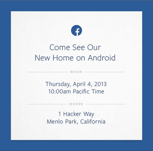 O Facebook enviou comunicados para a imprensa relativo a um evento que vai realizar na sua sede, a 04 de Abril denominado “Come See Our New Home On Android” – traduzido significa algo como: “venha ver nossa nova casa no Android”. Fontes referiram ao TechCrunch que no evento vai ser apresentada uma versão modificada do sistema operativo Android com funcionalidades integradas do Facebook num Smartphone. Isso pode realmente ser o Facebook Phone que há mais de um ano a imprensa internacional tem especulado a respeito.