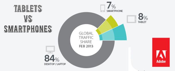 De acordo com um estudo realizado pela Adobe, os tablets e os smartphones são responsáveis por cerca de 15% do tráfego da web. A Adobe analisou mais de 100 bilhões (100 mil milhões) de visitas a mais de 1000 sites em todo o mundo e chegou a conclusão de que os sites globais estão recebendo mais tráfego a partir de tablets do que através de smartphones, respetivamente 8% e 7%.