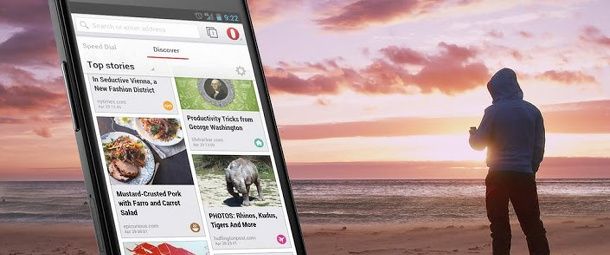 Além das novidades, existem algumas funcionalidades que diferenciam o Opera. Um desses exemplos é a inclusão de uma feed de descoberta de conteúdo que pode ser acedida por intermédio do deslize do dedo para a direita no ecrã inicial do Opera. No campo da compressão de dados a Opera inclui um modo “off-road”, que permite ser activado para reduzir o consumo do plano de dados e melhorar a performance do browser quando a conectividade é limitada. Esta funcionalidade também pode ser útil para reduzir de forma drástica o custo do consumo de dados quando se encontra a viajar e precisa de utilizar Roaming.