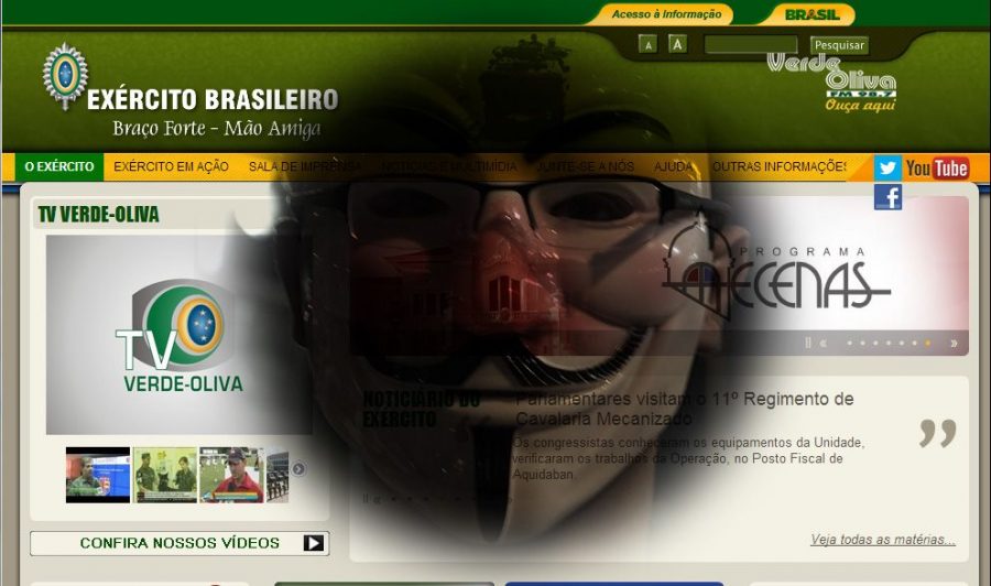 O site do Exército Brasileiro esteve fora do ar em virtude de um ataque informático, cuja autoria foi reivindicada, no Facebook, pelo Grupo Anonymous.