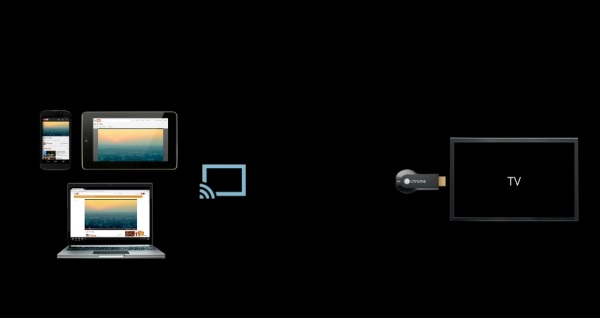 O Chromecast usa um sistema do tipo AirPlay para fornecer o conteúdo de um qualquer dispositivo via Wifi. Através de um dispositivo Android ou iOS, qualquer utilizador pode simplesmente clicar um botão no YouTube para carregar o vídeo para outro ecrã/tela. O processo com base na demonstração da Google é bastante rápido e fácil. O Chromecas também suporta playlists de grupo (cada utilizador contribui para o que vai ser reproduzido), e tem algumas funcionalidades muito interessantes. Uma delas é o facto de continuar a reproduzir conteúdo multimédia em plano de fundo, enquanto estiver a fazer outras tarefas como por exemplo atender o telefone.
