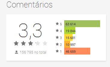 Uma das formas de avaliar o nível de satisfação de uma app é o número de estrelas que os utilizadores que testaram uma aplicação deixam na página de download de aplicação. Por essa razão, fui analisar qual era a distribuição de estrelas do Hangouts e os resultados quase que dispensam quaisquer palavras.