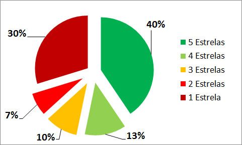 Como se pode ver na tabela da figura anterior, em nenhuma das aplicações a percentagem relativa a 1 estrela ultrapassou os 13%. O que significa que no universo de pessoas que votaram no Hangouts, a percentagem de utilizadores que deram uma estrela, é mais do dobro da aplicação mais penalizada das três anteriores (YouTube). De modo oposto, a quantidade de utilizadores que ficaram muito satisfeitos nas anteriores aplicações (optando por atribuir 5 estrelas) não fica abaixo dos 60%, enquanto no Hangouts é apenas de 40% (um valor claramente negativo).