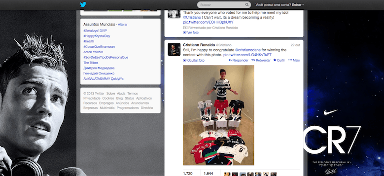 Neste concurso, era pedido que os concorrentes mostrassem o seu amor pelo jogador. Já com o contexto correto, a frase faz sentido. Cristiano Ronaldo não pedia posts de rapazes em trajes menores, mas sim fotos de fãs que mostrassem a paixão pelo futebol e por CR7. O vencedor ganhou uma viagem a Madrid para ver um jogo e conhecer o craque para três pessoas: “podes trazer um amigo e um adulto”, diziam as regras do concurso.
