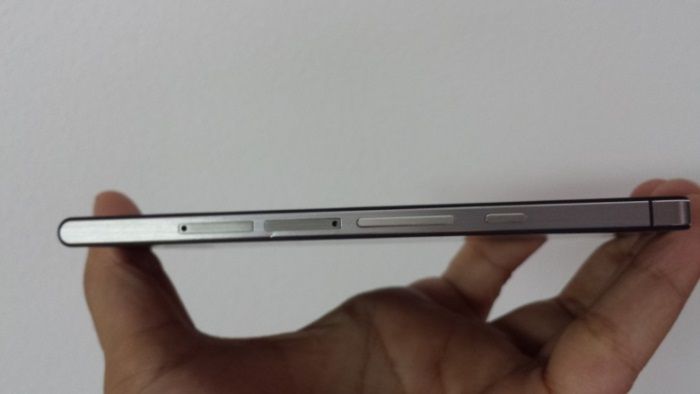 A banda de metal que envolve os lados laterais do Ascend P6 dá-lhe um aspecto robusto e ao mesmo tempo elegante, nela estão duas gavetas que servem para colocar o cartão SD e o cartão micro SIM. Devo dizer que ambas deviam ser mais robustas, pois quando tentei inserir o cartão SIM, deparei-me com algumas dificuldades, que se devem ao facto de o mecanismo de abertura consistir num pequeno alfinete, que é colocado no orifício da gaveta. Se fizermos um pouco de pressão a gaveta abre. Contudo a abertura não é muito fácil e pode levar a que percamos algum tempo, além de que o alfinete é um acessório que tende a perder-se facilmente. Uma vez aberta, a ranhura sai para fora e então podemos colocar o cartão. Mas ao colocar faça-o com o máximo cuidado, pois esta ranhura é muito frágil e não apresenta qualquer robustez.