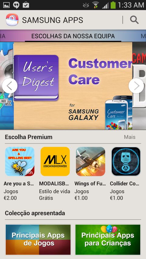 - Samsung Apps: É uma espécie de App Store ou Google Play da Samsung. A Samsung Apps permite-lhe encontrar e instalar algumas das aplicações e jogos. Algumas dessas aplicações existem na Google Play enquanto outras são oferecidas de forma exclusiva pela Samsung. Existe de tudo: apps pagas, gratuitas e com desconto especial