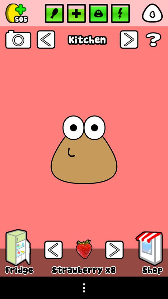 Muitas das divisões têm utilizações muito semelhantes às da vida real, e a cozinha é exactamente uma delas. Nesta divisão vai ser possível alimentar o Pou com os vários alimentos que tenha adquirido, controlar os conteúdos do frigorífico e aceder também à loja onde poderá adquirir novos alimentos conforme for evoluindo no jogo.