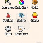 A loja encontra-se em praticamente todas as divisões do jogo e é onde vai poder fazer todo o tipo de compras do jogo. Poderá encontrar na loja diferentes tipos de bolas para o Pou brincar, papeis de parede para personalizar as divisões, novas cores para o Pou, comida, chuveiros, sabonetes, candeeiros, entre muitos outros objectos. Vai ser também possível aceder ao website oficial do Pou onde vai poder comprar acessórios reais para os maiores fãs deste pequeno alien.
