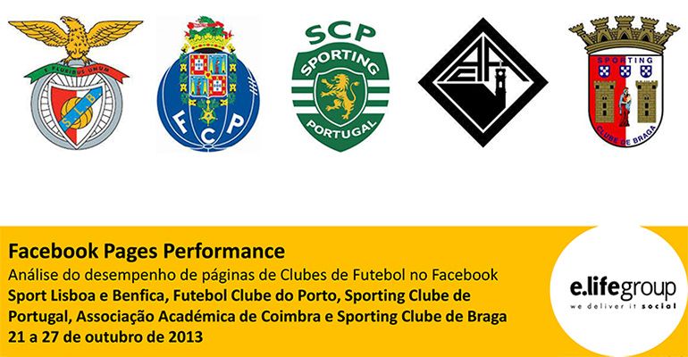 O mais recente estudo levado a cabo pela E.Life, empresa especialista em inteligência de mercado, avalia o desempenho das páginas de alguns dos principais clubes de futebol nacional. São comparadas as páginas que, segundo o Social Bakers, têm o maior número de Fãs no Facebook. Assim, Sport Lisboa e Benfica, Futebol Clube do Porto, Sporting Club de Portugal, Associação Académica de Coimbra e Sporting Clube de Braga estiveram em análise de 21 a 27 de Outubro.