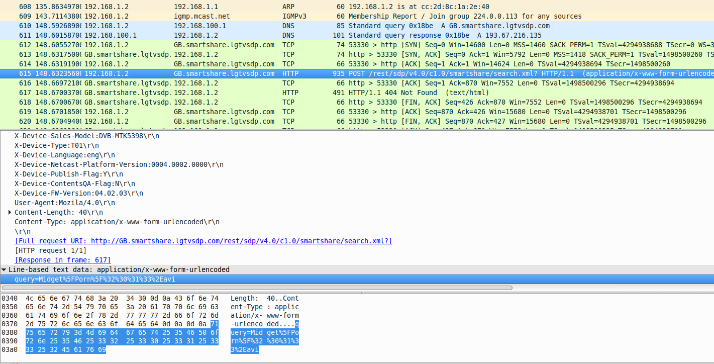 Depois de explorar um pouco mais a fundo todos os menus da televisão, reparou que existia uma opção chamada “collection of watching info” que se encontrava activa por defeito. Uma vez desactivada, foi quando se revelou o verdadeiro problema. O Sr. Huntley conseguiu descubrir que apesar de desactivada a funcionalidade, as mesmas informações privadas continuavam a ser enviadas para os servidores da LG, com uma única diferença, a marca encontrada nas informações havia passado do valor “1” para “0”, o que serviria como indicativo que o utilizadores não teria autorizado o envio da informação.