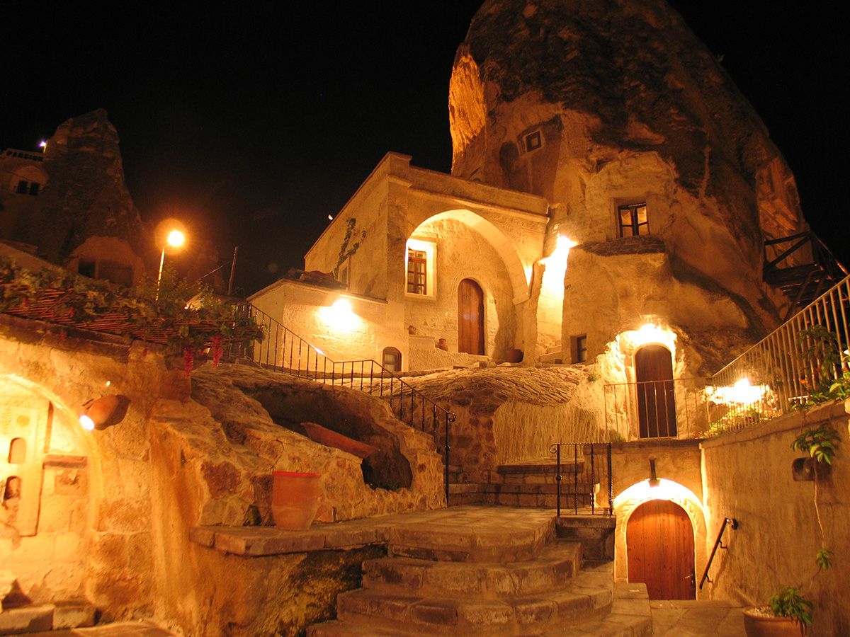 O Cappadocia Cave Suites é um hotel único que proporciona aos hóspedes noites em cavernas originais dos tempos hitita, romano e bizantino. O sistema de cavernas foi convertido em magníficos quartos individuais que preservam o ambiente antigo e foram decorados utilizando pedrasesculpidas à mão. Os hóspedes podem aproveitar todo o luxo do século XXI num dos 36 quartos e suites, todos equipados com Wi-Fi, minibar e chá e café como cortesia. No espaçoso restaurante da caverna, é possível tomar um delicioso pequeno-almoço turco ou aproveitar os buffets de jantar com especialidades locais. Durante o dia, os hóspedes podem relaxar num dos vários terraços ao mesmo tempo que desfrutam de uma fantástica paisagem natural.