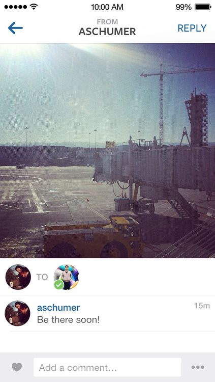 O princípio do “Instagram Direct” é semelhante à função do Twitter – mensagens diretas (“DM”) – que permite que dois usuários troquem fotos em modo privado.