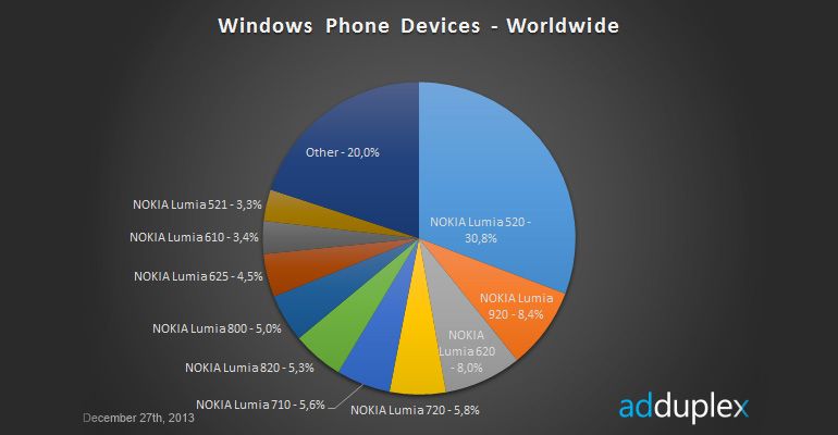 De acordo com a AdDuplex, uma popular rede de publicidade para Windows Phone, o smartphone de baixo custo Lumia 520 responde por cerca de 30% de todos os Window Phone vendidos mundialmente.