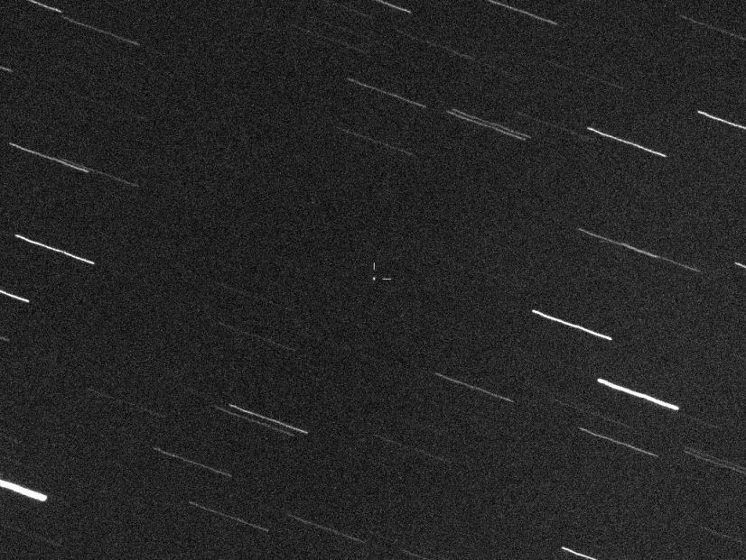 o asteroide 2014 dx 110 é o ponto branco visto no centro da imagem obtida pelo virtual telescope project, na itália, em 3 de março. Crédito: gianluca masi