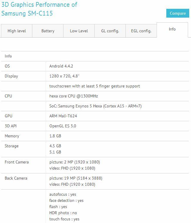 O Samsung Galaxy S5 Zoom (SM-C115) surgiu hoje na base de dados GFXBench, onde foram reveladas algumas especificações do seu hardware. Infelizmente para os fãs deste tipo de híbrido que junta câmara fotográfica digital e smartphone a Samsung adoptou a mesma estratégia que aplicou com o S4 Zoom.
