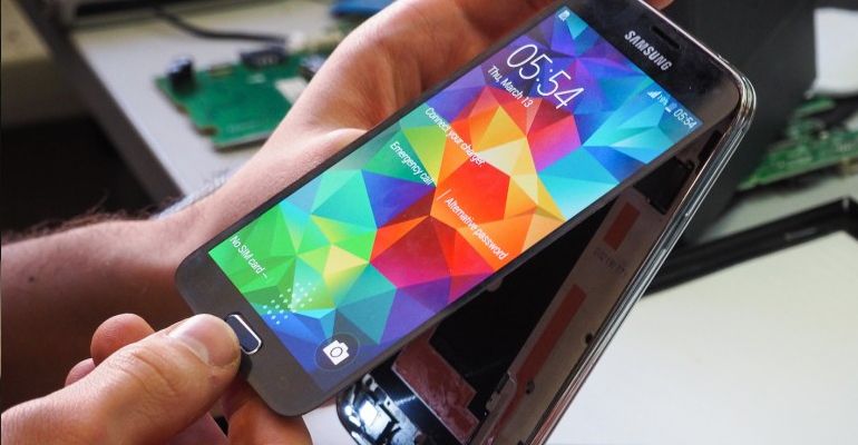 De acordo com o website, será extremamente complicado remover o ecrã do Galaxy S5 devido a um adesivo especial utilizado pela Samsung. Após o ecrã ser removido, o resto do processo é bastante mais simples embora demore mais de uma hora.