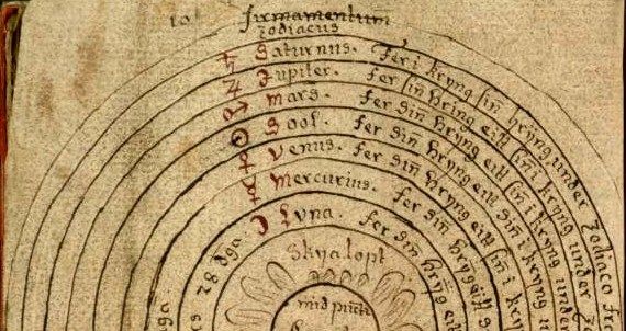 Manuscrito islandês, escrito por volta de 1750, demonstra o modelo geocêntrico.